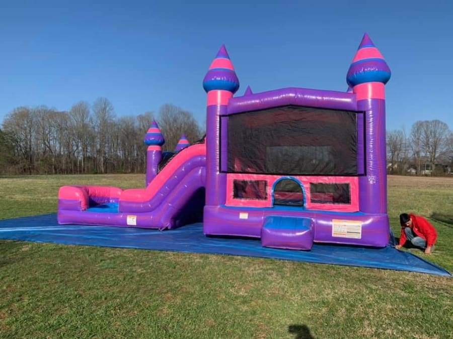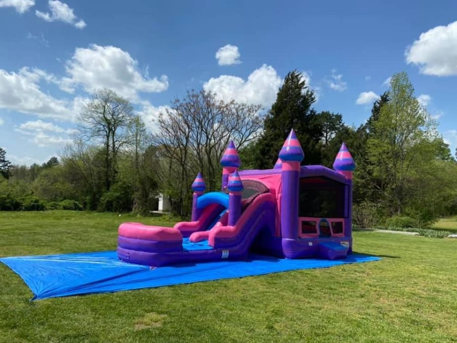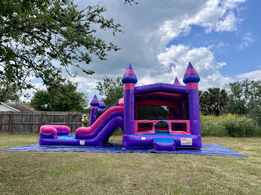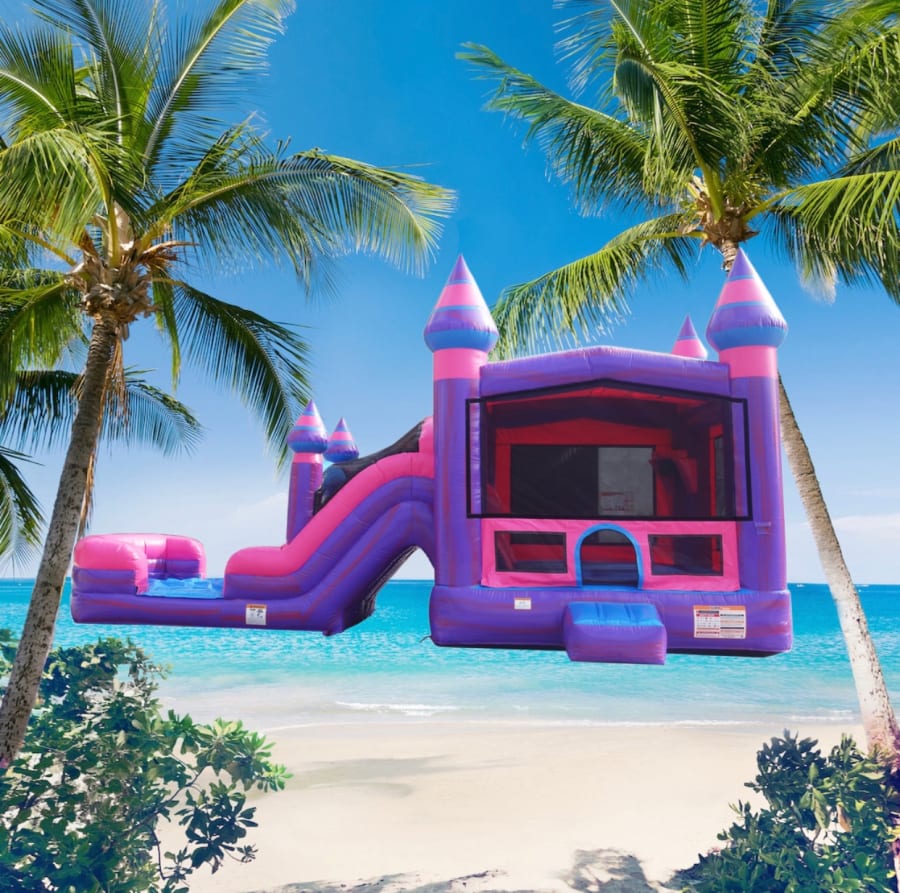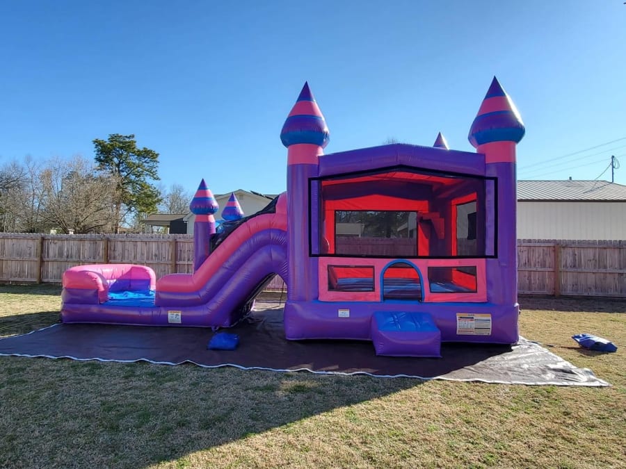 The Purplish Combo is the perfect pick of entertainment all year round! This pretty bounce house can be used wet or dry and is guaranteed to keep lively children of any age well amused! It has large mesh windows so you can keep a eye on all the jumping, playing ball, climbing, and sliding. Did we mention it has dual lane slides to see who can make the bigger splash!
