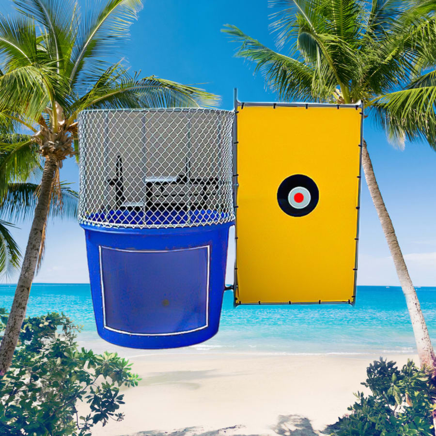 Got aim? Put your skills to the test! Hit the target and dunk your friends, family, or anyone you want to fall in the big tank of water. Do you have what it takes to hit the target?